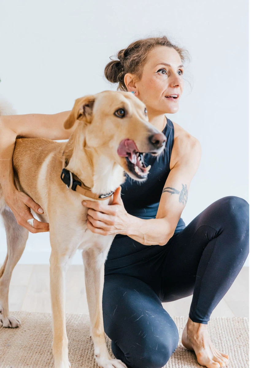 My constant yoga companion, as seen in many photographs, is my beloved dog Alfie — alongside the quiet magic of Peru.